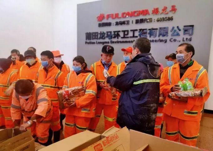 2月4日正荣莆田抗疫公益小组来到莆田龙马环卫公司慰问城市环境守护者