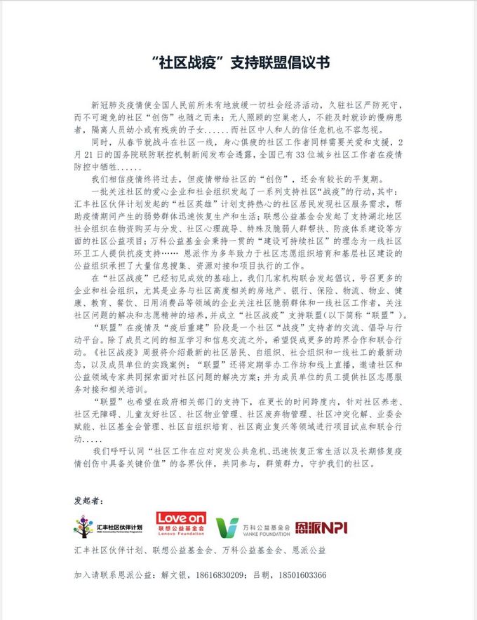 附:“社区战疫”支持联盟倡议书