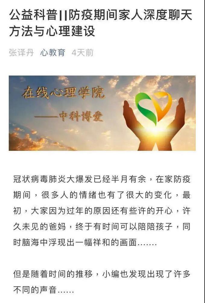 1月27日,中科博爱全体员工在线上开了紧急会议,并联合中国心理学会发起为共筑安心家园的“安心行动”项目。随后,团队开始组织专家团队,为重点人群和普通大众录制科普音频、视频,并通过微博、公众号、哔哩哔哩网站等各大平台扩大传播,以期缓解居民群众因疫情所导致的紧张焦虑心情。