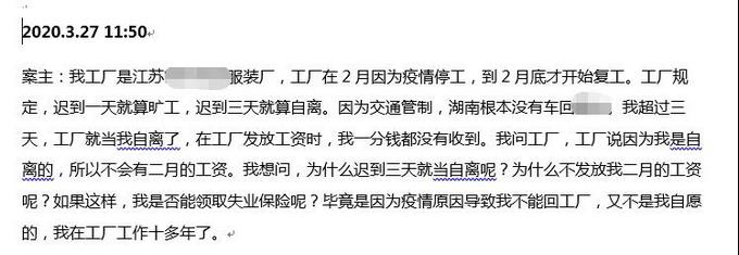 2、热线接收到江苏某制衣工厂的员工反映,因为疫情复工推迟,工厂解雇的问题,通过热线现有的渠道,开展多方协商沟通,希望通过非司法沟通机制解决问题。
