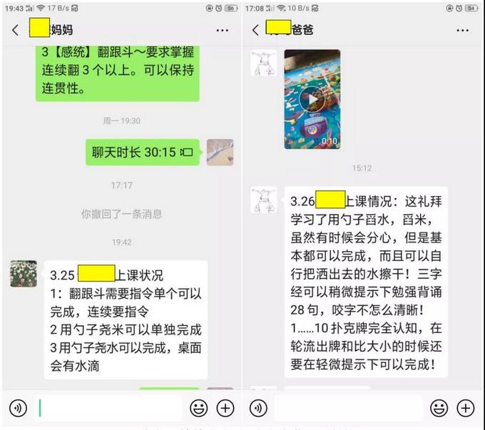 家长反馈单次孩子进行视频指导时的情况