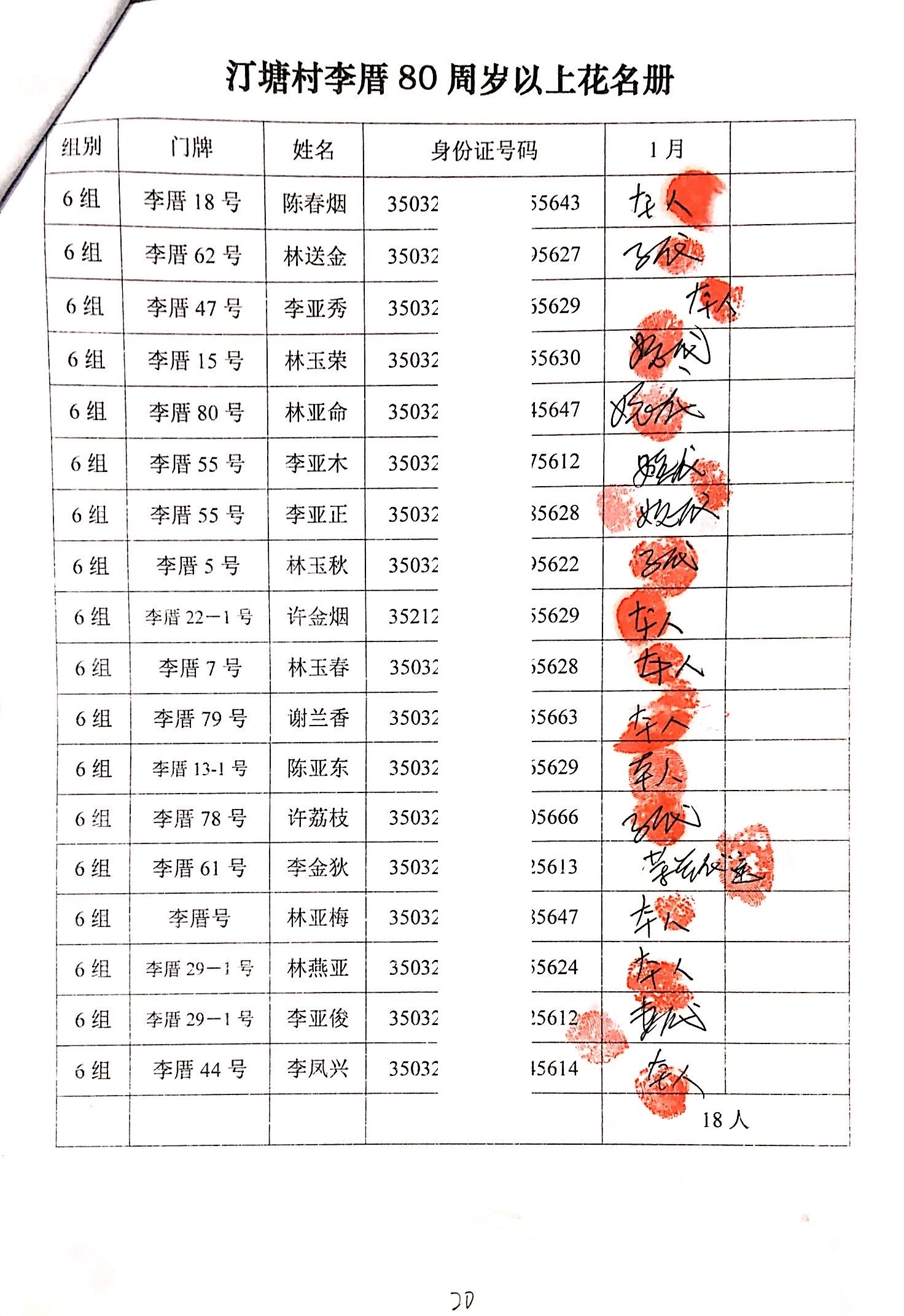 2020年1月,项目为汀塘村70周岁以上的老人发放400-1000元不等礼金(70-79岁老人,一个月400元;80-89岁老人,一个月600元;90-99岁老人,一个月700元;100岁及以上,一个月1000元。)