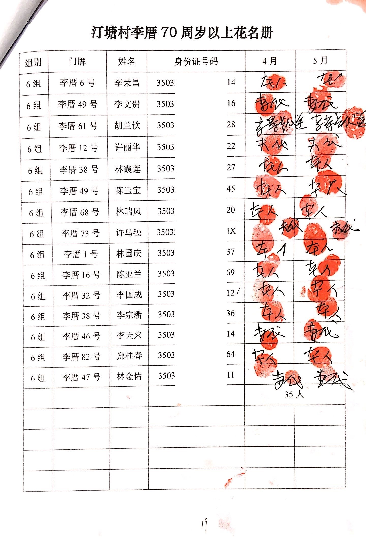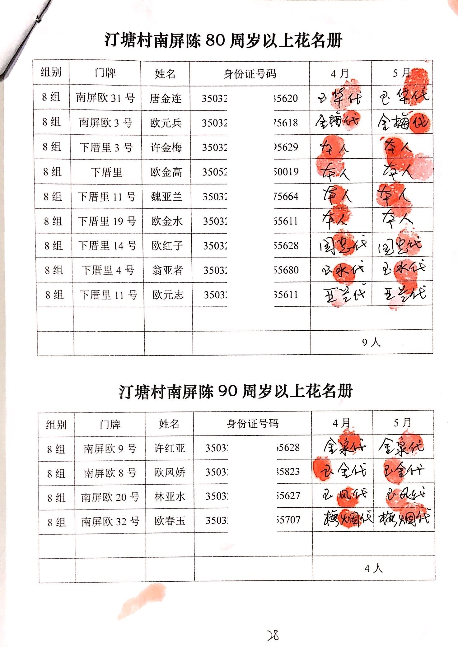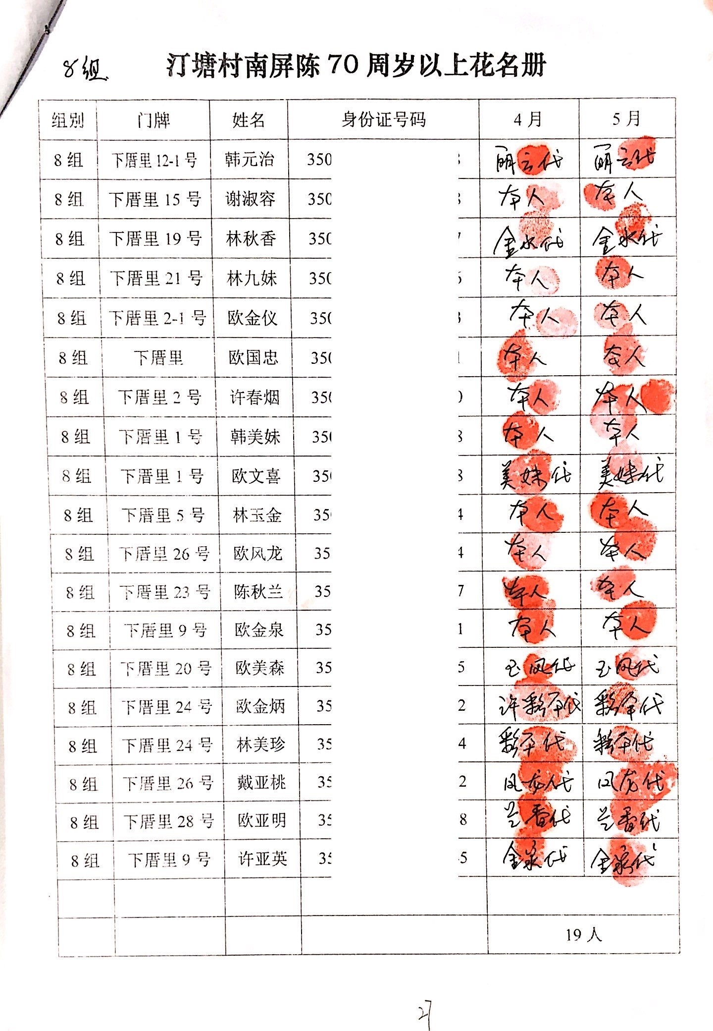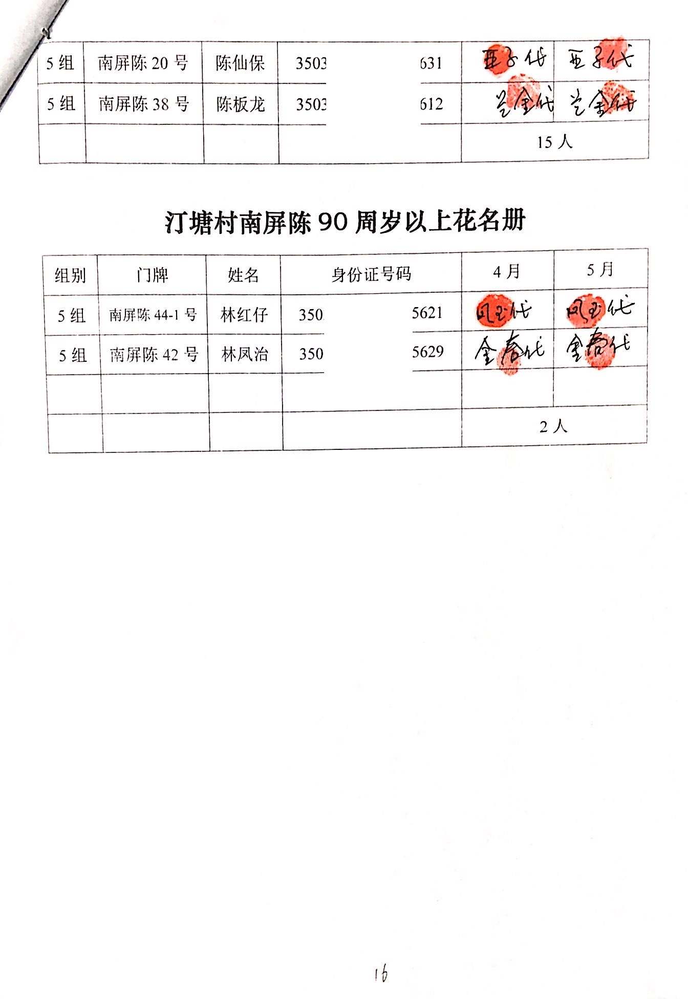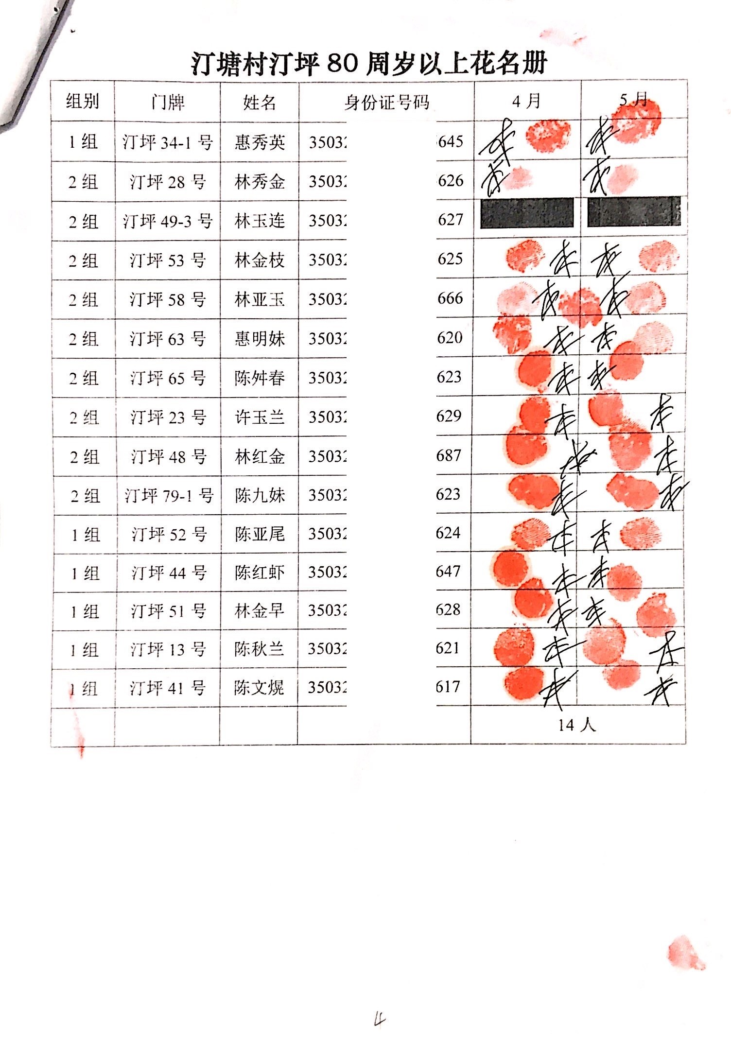 2020年2、3月,项目为汀塘村70周岁以上的老人发放400-1000元不等礼金(70-79岁老人,一个月400元;80-89岁老人,一个月600元;90-99岁老人,一个月700元;100岁及以上,一个月1000元。)
