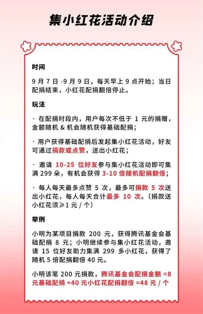 还可以参加集小红花活动使配捐翻倍