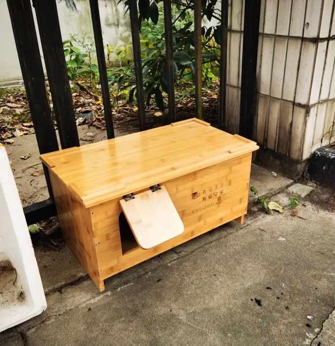 小邓:我们以前都是拿泡沫箱外面贴的防水纸套上黑色袋子来做的猫屋,稳定性和防水性都需要改善。现在小区里的猫基本上都做了TNR,目前最需要的就是给猫咪们一个温暖的窝。