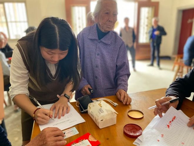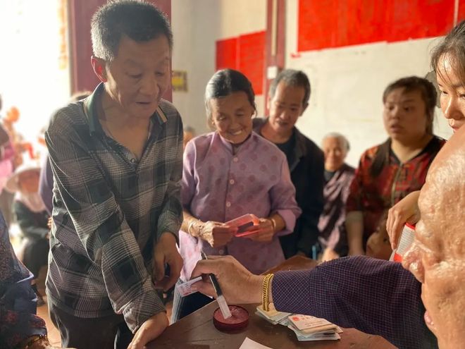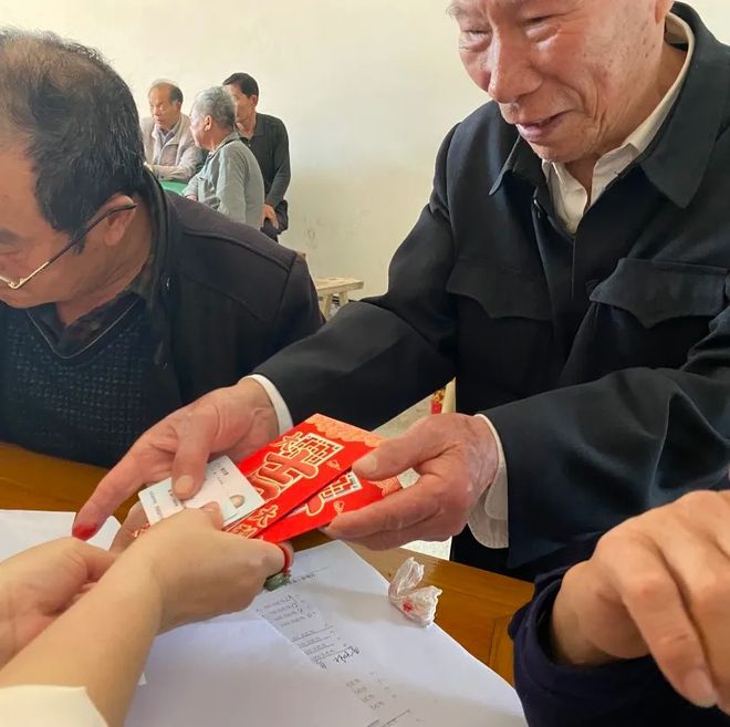 福寿金发放人员由启福社工和村民志愿者组成,当天项目分为4个发放小组,细致并且有序地进行信息核对、登记和福寿金发放。