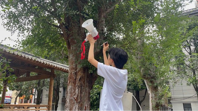 驻地前期的时候我凌晨起来到公园里跟阿姨大叔们聊天,大部分居民都特别热情,诉说起了她们的烦恼,社区的近况、八卦和历史等等。我问他们觉得蝉鸣烦人吗,他们回答我说还好,因为这代表了生态好:以前社区是没有的,景观改造之后才出现这么大声的蝉鸣。这是很有趣的点,人们不觉得蝉鸣烦人,但觉得装修声烦人,明明他们声音有点像,分贝也不相上下。
