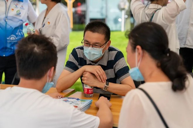 在市集中,我们看到有带着孩子来到义诊区,与专科医生进行对话的妈妈;有在科普区前扫码观看视频的老人;有在义卖区了解作品背后故事的居民;有在互动沙龙中倾听、学习和分享的伙伴。其中,不乏市集的“回头客”,和工作人员聊起去年市集的场景依然印象深刻……