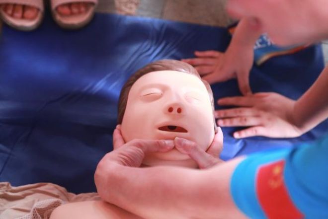 在林晓亮给大家讲解了救生绳如何使用的相关知识后,林晓亮老师还特意准备了一个人体模型,为了给大家讲解并示范心肺复苏法。