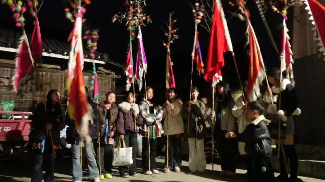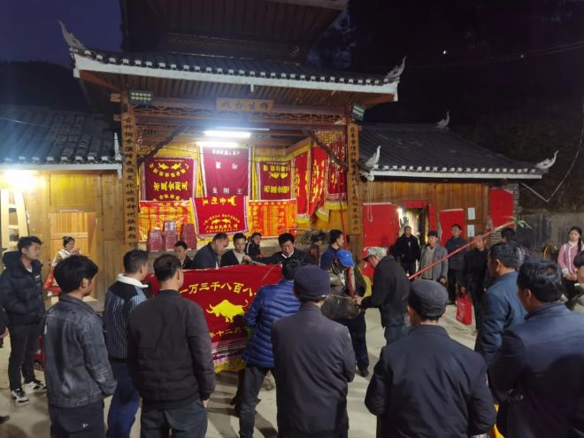 在云上粮仓门前,金师姐和舅妈带着不到十位刚放学的同学们,却唱出了大型合唱团的气势,对侗族的第一印象就这样从拦路酒歌开始,而次日清晨的牛王欢送仪式则让我对侗族村寨文化有了进一步的认知。我们到达时太阳还没有照亮大山,但已经有很多村民坐在鼓楼旁聊天说笑了。随着芦笙队到达鼓楼,眼前的一切都非常的新奇,最令我惊讶的是我从未见过一场村里的非强制性活动(更不用说是发生在天还没亮的清晨)可以吸引这么多各年龄段的人参与,儿童、中青年、老年人都聚集在屋外等着牛王“金刚王”亮相,芦笙队更是由从小朋友到长者的几乎全年龄段村民参与。简单仪式后,“金刚王”在众人簇拥下走向村口,天也逐渐亮起。这样一场沉浸式的文化体验,让我意识到牛在当地人和文化中的重要性,对当地人说的“有了牛村子就聚起来了”有了更加深刻的理解。