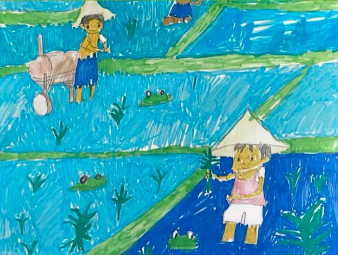 田间劳作即景、新春佳节喜庆祥和的盛况、农家小院玩耍的野趣、宇航员太空翱翔……丰富多彩的画面一一呈现在“支教艺术家”的眼前。孩子们内心广阔的田野和天马行空的想象力,让评委们赞叹不已。