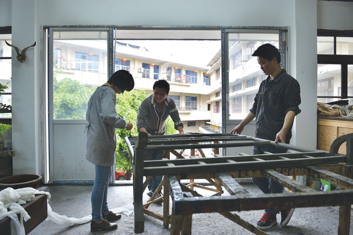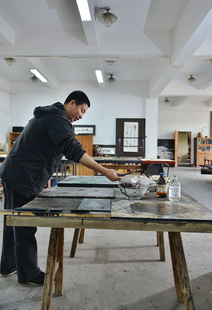 现在,沈克龙每天早晨起来先在工作室转一圈,看看作品,然后制定计划,开始一天的创作。只要进入创作状态,满手是漆,中间连接电话都不便,也因此更不希望被打扰。“艺术是挺消遣、挺自我的一个状态,需要安静、静心创作。”与许多北上的艺术家不同,求静的他因着喜欢福建的山水和漆艺环境,更乐于待在这片空间里,他还和朋友常常开着车就去福州附近的村庄转悠,希望能在山水间找到一处更加安静的创作空间。