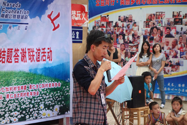 最后,吕小英代表心家园全体成员再次感谢芦山的乡亲父老对我们的热心帮助,感谢仁加村全体村民对我们工作一如既往支持与肯定,感谢正荣公益基金会、南都公益基金会给了我们一个为芦山人民提供微不足道的社区服务平台,在接下来的岁月里一再的坚持,一再的努力,一再的奋进,我们与大家一路同行。
