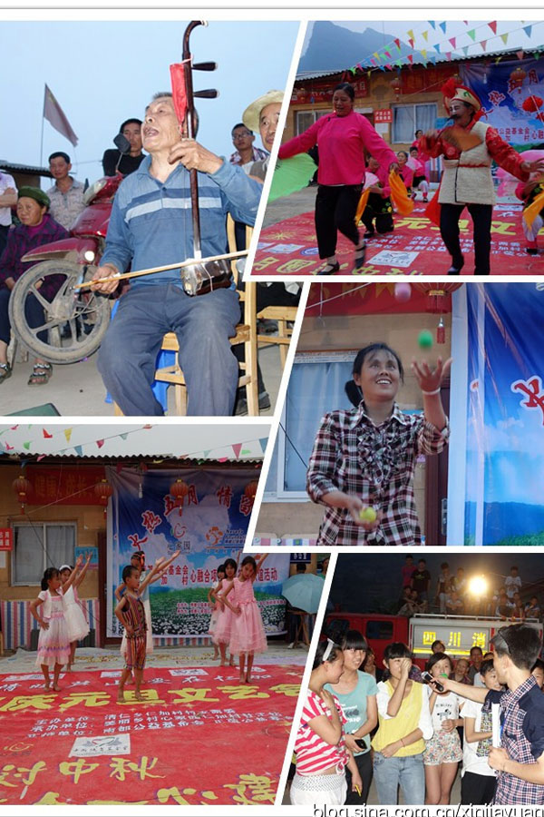 最后便是广大村民期待已久的文娱表演,芦山花灯作为芦山人民的艺术瑰宝,平凡的人儿演绎着自己生活中的快乐与烦恼,诉说着自己对美好生活的感悟,表达着自己对未来美好的憧憬,诙谐幽默、接近地气,听听老乡的掌声、看看每个人脸上痴迷的表情,就知道花灯在芦山人民心中的份量有多重。接下来舞蹈动起来、歌声飘起来,杂技耍起来,二胡独奏拉起来,趣味问答笑起来,在这5月的最后一天,我们尽情地开心,暂时忘却烦恼,心存感恩,让我们的生活更有意义,我们的生命更加的厚重。