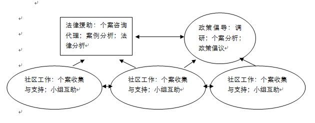 特别要指出的是,图中这些工作不一定都是草根组织来承担。因为在这个资源决定话语权的背景中,高校等机构天然具有倡导的优势。在战略性眼光下,不同社会主体(政府、高校、社会组织等)都可以而且应该在社会问题解决中发挥其相对优势作用。但草根组织(多是社区组织)贴近底层的特点,是推动社会问题改善的基础与关键。