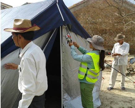 6.为防止降雨,在养才组帮助村民搭建帐篷。