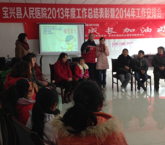 2013年12月14日、15日,红枫项目组在宝兴县医院成功举办了名为“快乐成长加油站”的第1期儿童工作坊。2014年春节后,红枫项目组再次来到宝兴。2月22日、23日,成功举办了第2期儿童工作坊。