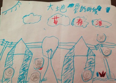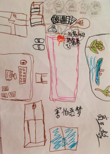 随着课程的进行,孩子们感受到了接纳、安全的氛围,将地震后一直压抑在心中分辨不清、又不知如何表达的负性情绪用绘画的方式呈现,又逐一将说不清的负性情绪用贴纸命名,梳理、宣泄了孤独、害怕、担心、焦虑、愤怒、难过、悲伤等负性情绪,并联结了支持、陪伴、安慰的过渡客体,使孩子们课后再感受到负性情绪时也能有宣泄的出口,能管理好自己的情绪,以缓解应激障碍的情绪及身体症状。