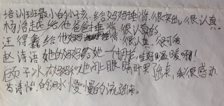 为保护孩子,安排父母没能来参加活动的孩子,在工作坊中任观察员,这是一位孩子的观察记录