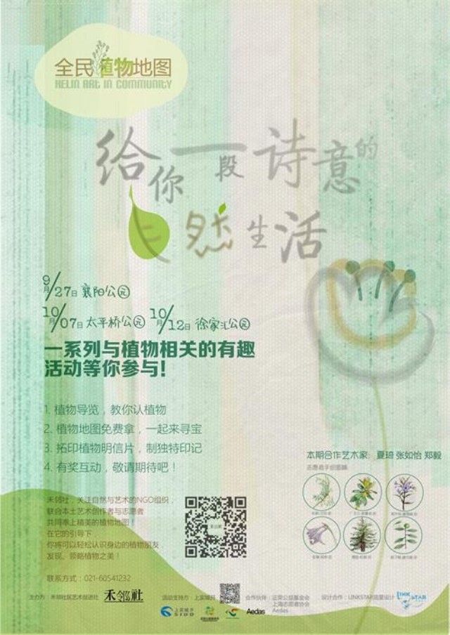 “全民植物地图”是禾邻社于2011年发起的文化传播项目,秉承“传递自然之美”的理念,以精致有趣的植物地图为媒介,吸引大众走到户外,认识植物,感受自然与艺术之美,从而达到促进社区融合与公共艺术传播的目的。