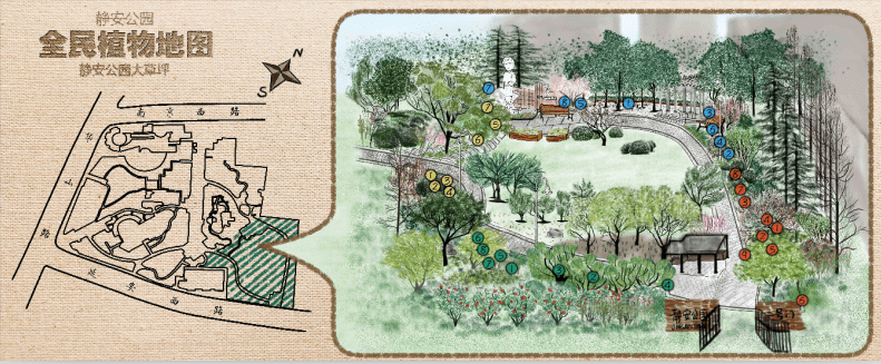 ① 植物地图领取——现场领取精致的公园植物地图,还可以在公园画卷上留下自己的彩色指印