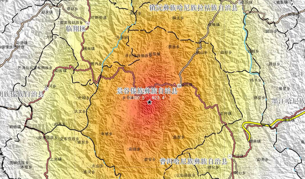 2014年10月7日21时49分,云南省普洱市景谷傣族彝族自治县(北纬23.4度,东经100.5度)发生Ms6.6级地震,震源深度5千米。普洱市震感强烈,云南全境均有震感。截至8日4时整,景谷地震序列共发生105次,其中1.0至1.9级40次、2.0至2.9级21次、3.0至3.9级6次、4.0至4.9级2次、6.0至6.9级1次。截至8日4时40分,本次地震已造成1死324伤。