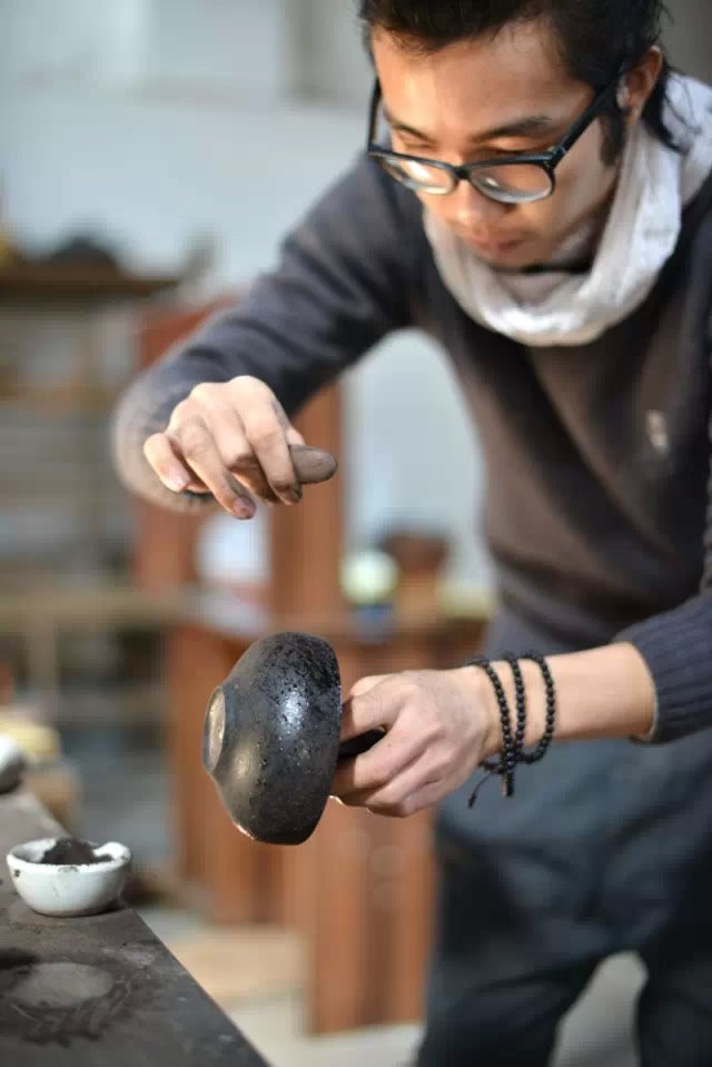 邱师傅星期一到星期六每天雷打不动九点之前就一定会出现在大漆作坊。当师傅拿起工具做起漆的时候就像变了另一个人一样,那种极度专注的状态会导致周围的时间发生停滞,甚至有时候我们跟师傅说话,师傅也听不见。认真以及专注便是师傅工作时的状态,那是一个匠人由内而外散发的一种气质。