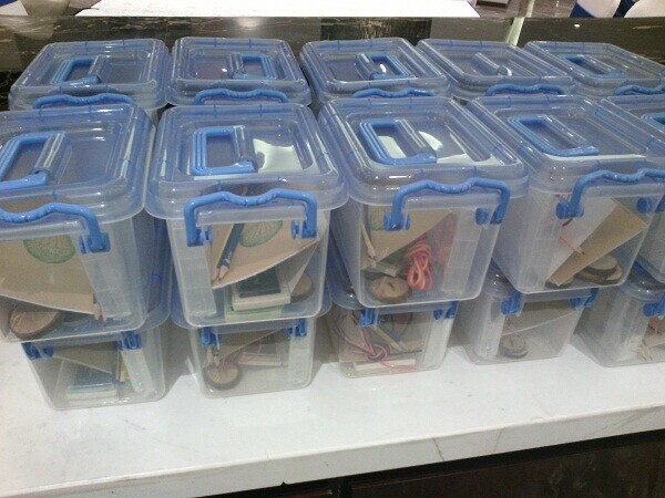 参加活动的孩子最小的只有11个月,大部分孩子的年龄在4-7岁左右。每个小朋友在签领取一个属于自己的工具包,包里装满了各种各样的宝贝。面对这么多长得一模一样的工具包,要怎么找到自己的那个工具包呢?不用着急,我们将给大家准备美美的贴纸。大家可以在贴纸上写上自己的名字,并贴在工具包上,那么这个工具包就是属于你的啦。