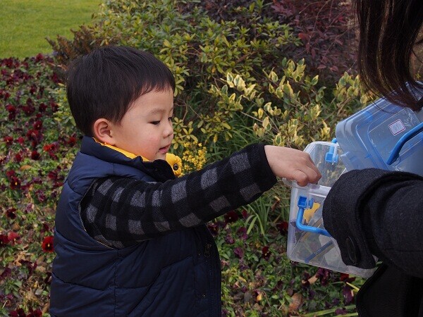 分好小组后,助教姐姐们带着大家出发寻宝了。在正荣国领的园区里,大小朋友们开始了欢乐的旅程——“姐姐,这两个叶子是一样的吗?”“鲜花是自然物吗?”“这种花叫什么名字?”“姐姐姐姐,我的宝物收集齐了吗?”小朋友们虽然年龄小,但是在探秘大自然的过程中,总会发现各种有趣的问题。不过,大家在收集宝物的时候,要记得做一个好孩子,不要伤害那些正在生长的小生命哦。