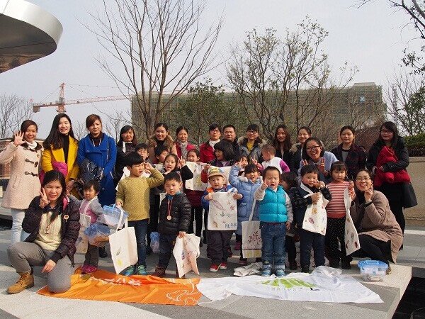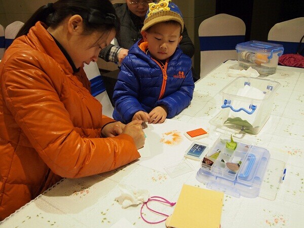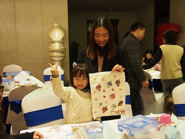 当然,玩转自然的方法是多种多样的。除了明信片,我们也可以在小布袋上制作我们独一无二的叶脉画。很明显,这样的活动吸引的不只是小朋友,粑粑麻麻们也一样可以玩得很开心。看着大家的作品秀,围观的伙伴们有没有心动呢?